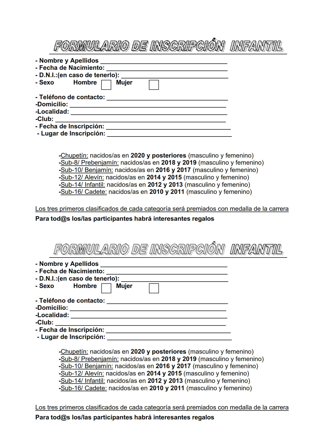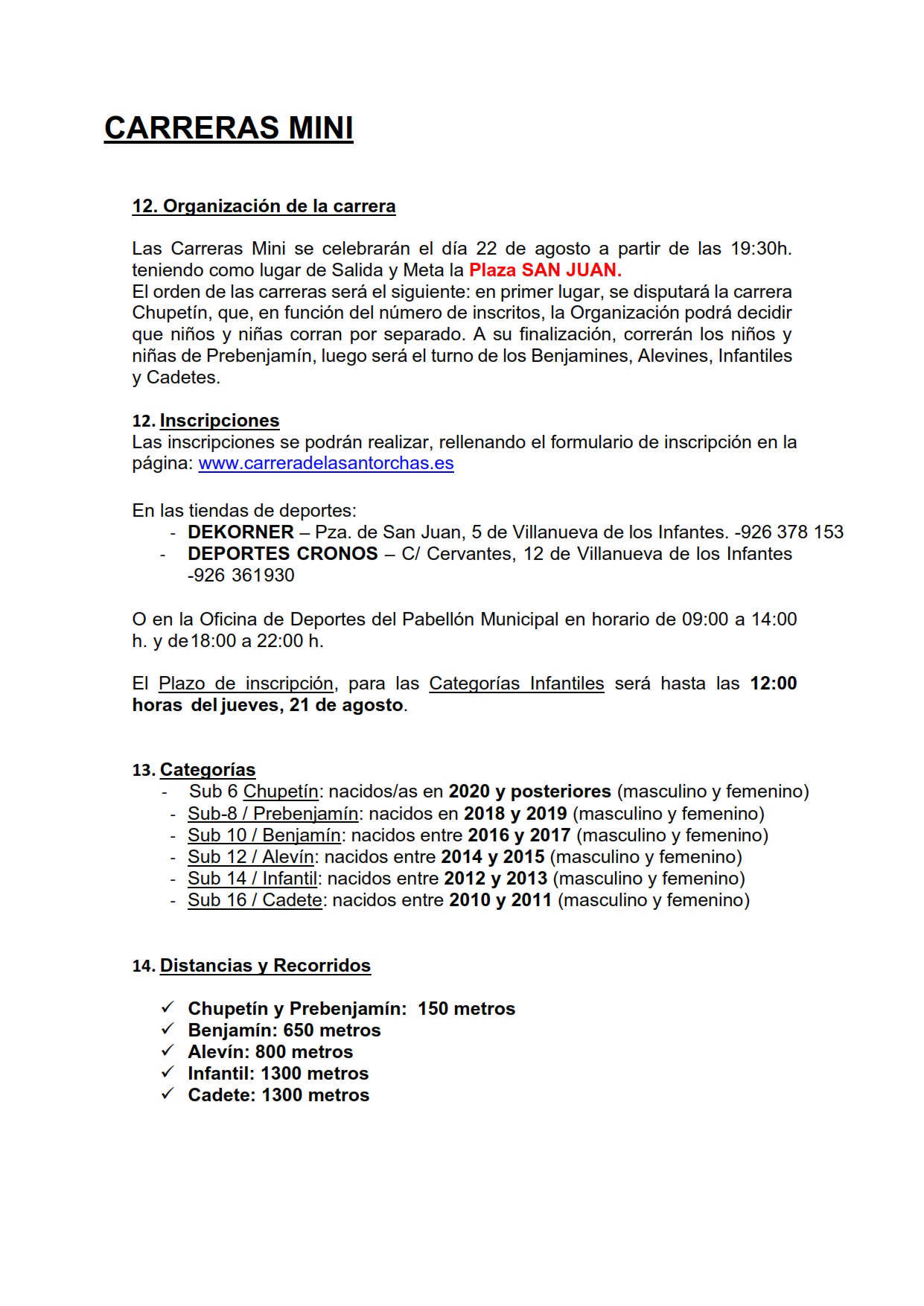 LAS INSCRIPCIONES SE REALIZARÁN EN EL PABELLÓN DE DEPORTES DE VILLANUEVA DE LOS INFANTES Ó EN LAS TIENDAS DE DEPORTE, DEKORNER Y DEPORTES CRONOS.